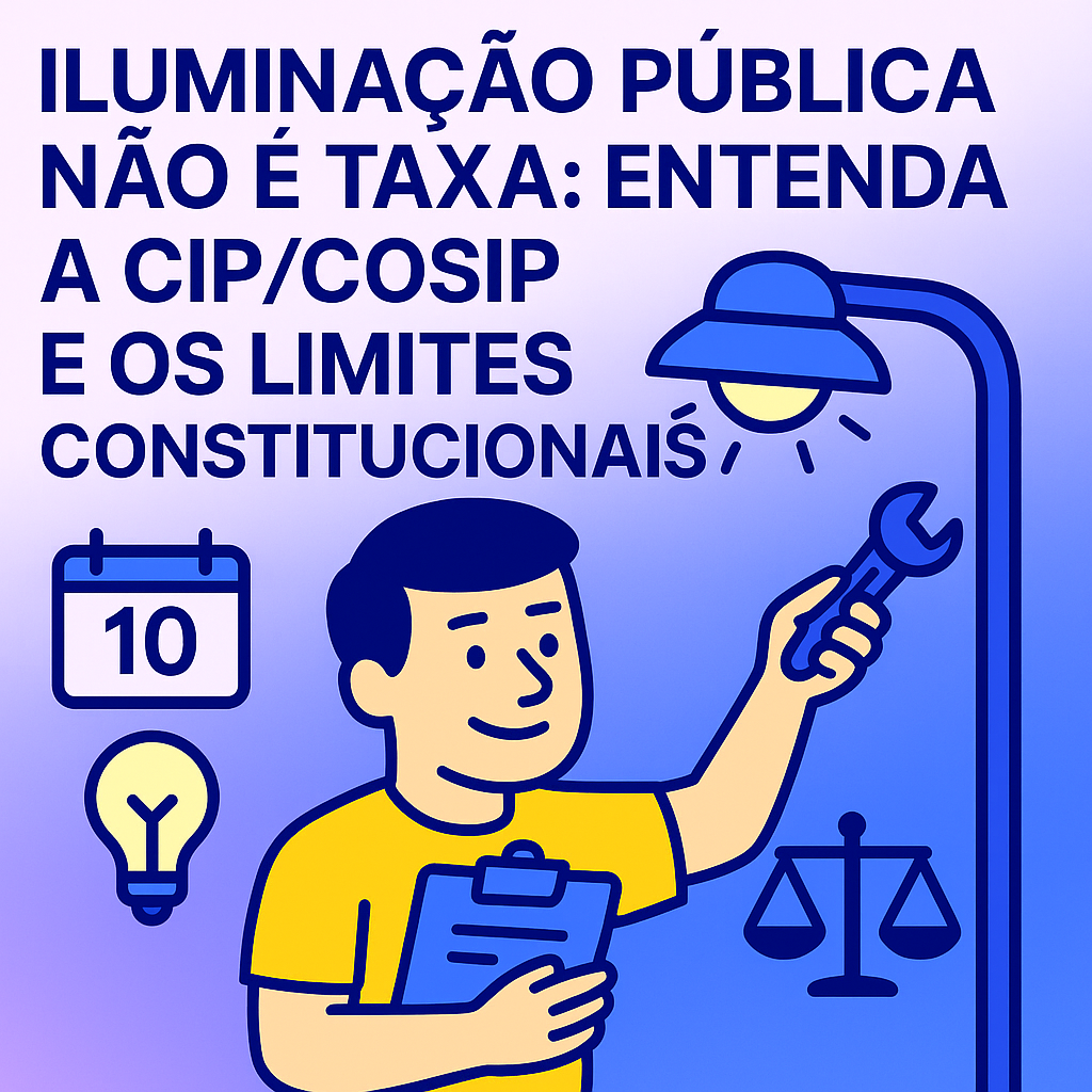 Mensagem-chave: a “taxa de iluminação pública” é inconstitucional. Após a EC 39/2002, a Constituição criou instrumento próprio — Contribuição para o Custeio do Serviço de Iluminação Pública (CIP/COSIP), no art. 149-A, de competência de Municípios e do Distrito Federal.