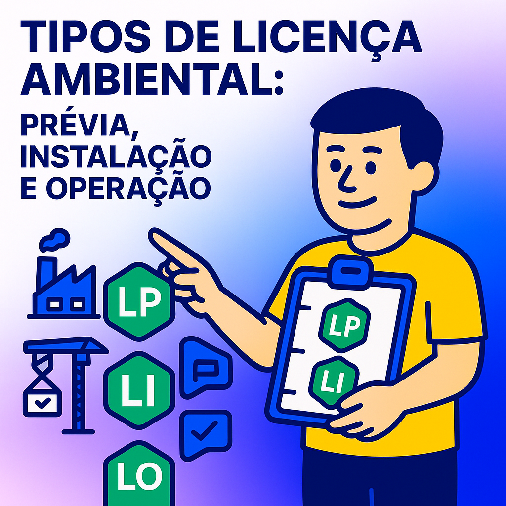• Licença Prévia (LP): emitida na fase de planejamento, avalia viabilidade ambiental, define diretrizes e analisa localização, tecnologia e impactos potenciais.