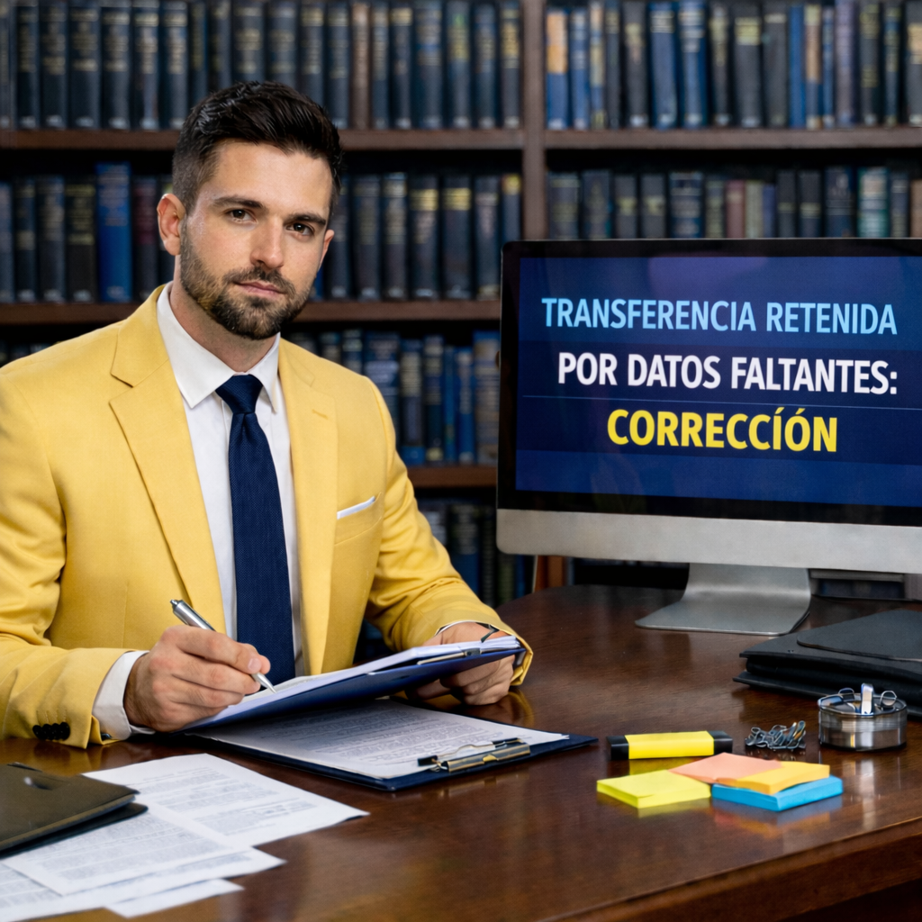 Una transferencia retenida por datos incompletos puede inmovilizar fondos; entender el motivo y documentar la corrección acelera la liberación.