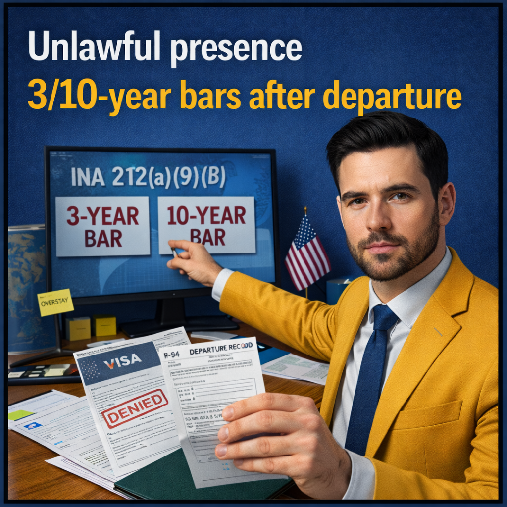 The 3-year and 10-year bars under INA 212(a)(9)(B) typically come up when someone tries to re-enter, apply for a visa, or adjust status after a period of overstay or other gaps in lawful status.