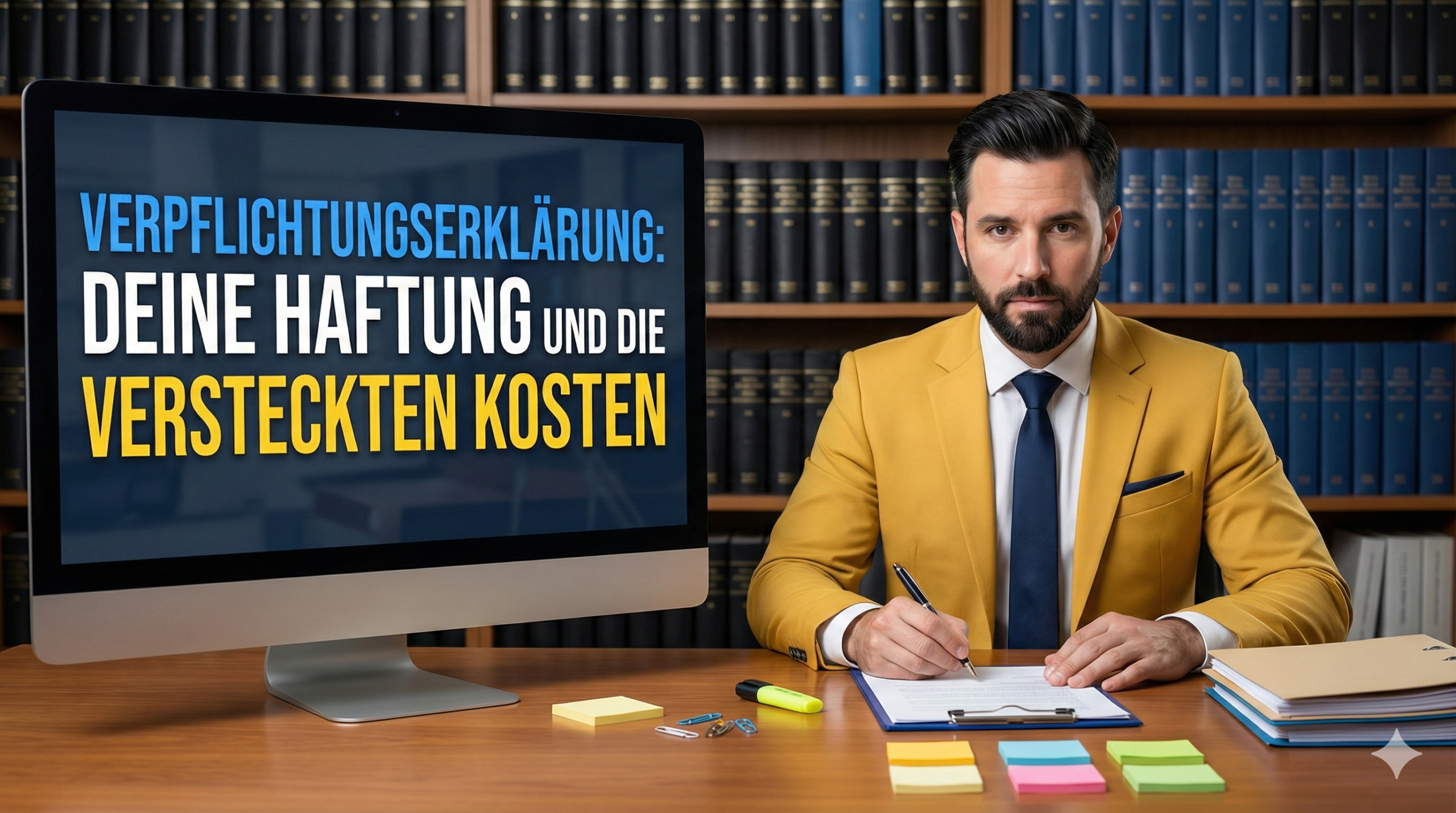 Dieser Artikel klärt die mechanischen Abläufe der Verpflichtungserklärung im Jahr 2026, analysiert die realen Kostenrisiken und zeigt auf, wie man durch eine proaktive Dokumentation und die richtige Absicherung das Risiko minimiert. Wir untersuchen die Beweislogik der Behörden bei der Bonitätsprüfung und erklären, warum der “Gefallen für einen Freund” im schlimmsten Fall zur Privatinsolvenz führen kann, wenn die rechtlichen Rahmenbedingungen nicht präzise beachtet werden.
